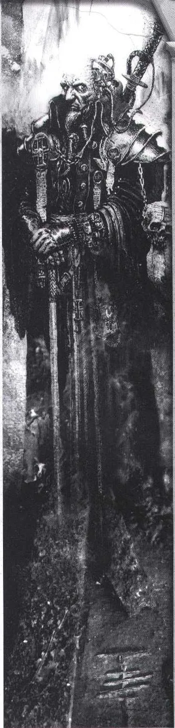 Он посмотрел на лицо человека, державшего меч, лысого и покрытого шрамами мужчины в пышной красной мантии, расшитой золотыми розетками Инквизиции. На его спине был свистящий механизм, а за ней — безликие прислужники в капюшонах и сервиторы. Катанена держали на прицеле штурмболтеров трое Серых Рыцарей, а вокруг инквизитора летал жужжащий череп с пылающим красным глазом. Кожу инквизитора покрывали письмена, которые Катанен прочитал как имена, множество рядов имён. Инквизитор был фанатиком. Что ещё хуже, знакомым Реликтору фанатиком.