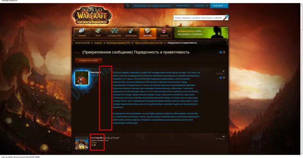 Так же, есть трабл с форумом Баттл.нета, а именно с разделами Старкрафта и WoW'a. Текст в постах обычных форумчан съезжает в сторону аватарки (налево), но посты Близардов в порядке. Когда я залогинен проблем нет и посты выглядят нормально.