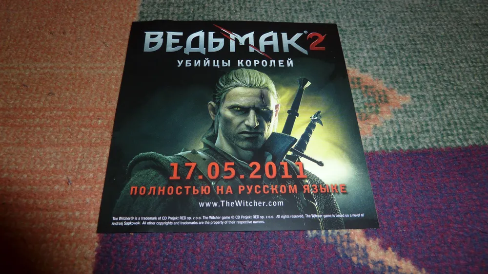 Почему больше? Ведь дальше рекламка Ведьмака 2! Первая в мире реклама, которую можно пощупать. На ней написано, всё что мы и так знаем, а именно ,что она выйдет 17 мая 2011 года полностью на русском языке. Дана ссыль на оф. сайт игры. Дальше мы можем увидеть скриншоты из Ведьмака 2, которые мы уже видели даже не сто раз.