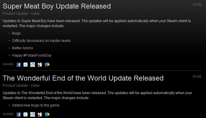 Совсем недавно в Steam начали обновлятся игры, во все были "добавлены" баги, вылеты и прочее, а также КАРТОШКА!