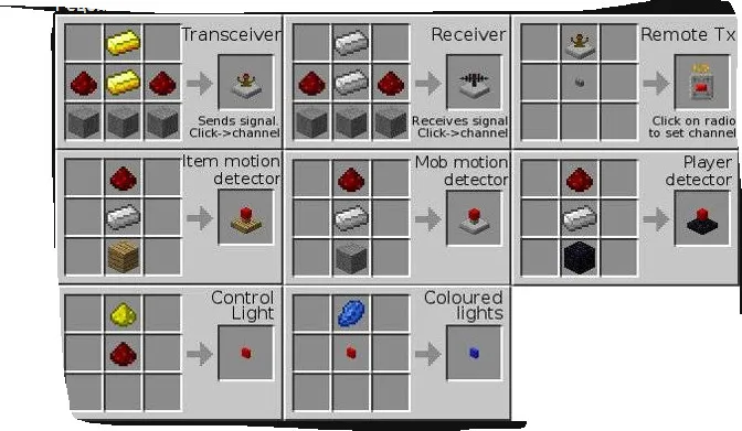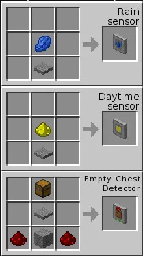 - Детекторы движения. (3 типа-предметы, мобы, игроки, детекторы. Детектор засекает все живые существа кроме игрока)
