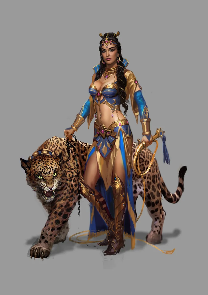 Несомненно, охотница вышла оригинальным персонажем, но ей не хватало восточной женственности, заданной геймдизайнерами в описании. Поэтому художники пошли немного иным путем, привнеся в образ больше элементов востока, но сохранив при этом охотничьего "пета", а также отдельные составляющие образа (лицо, основные элементы одеяния). Результат ниже: