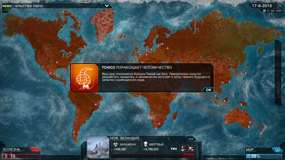 Оригинальная Plague Inc вышла в 2012 году для мобилок на базе Android и iOs, практически моментально став там хитом. На эту игру авторов вдохновила браузерка Pandemic 2, но они не стали делать бездушный клон, а создали свои личные механики игры, не забыв добавить черного юмора. Успех был оглушительный, количество закачек уже перевалило за 12 миллионов штук, и вот настало время собирать новый урожай, на этот раз с PC.