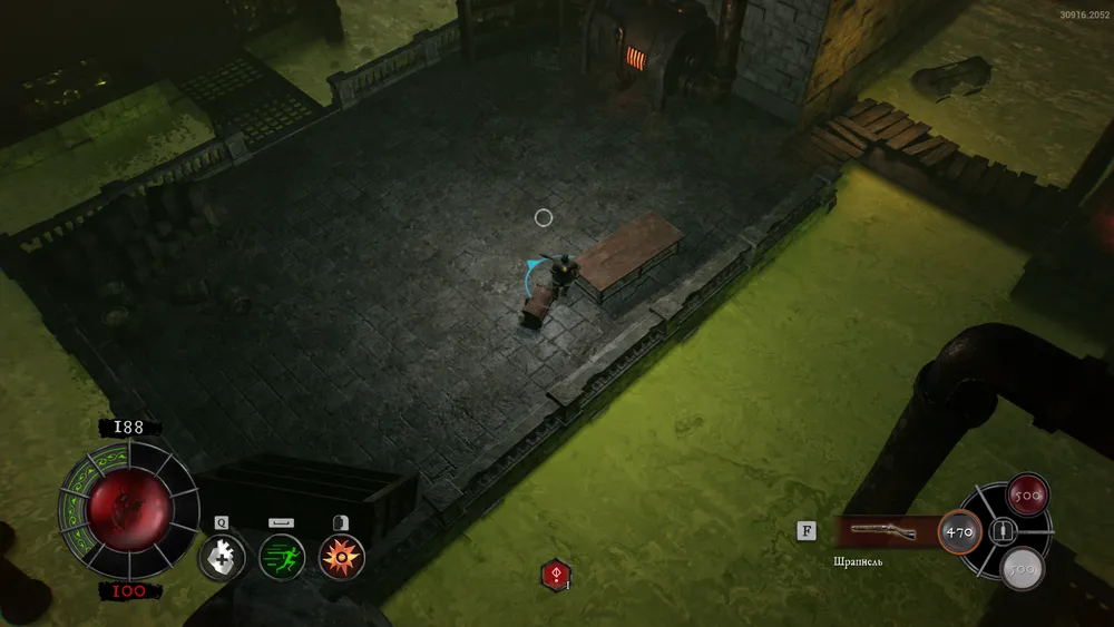 Привнести разнообразие призваны ролевые элементы. Во-первых, во время игры мы расширяем арсенал оружия: помимо дробовика, герой соорудит нечто похожее на пулемет и мортиру. Орудия улучшаются на верстаках, которые разбросаны в определенных точках на каждой локации. Посещение нового верстака позволяет улучшить свое оружие. Так, обычный дробовик научится стрелять огнем, пулемет превратится в удобный огнемет, а мортира, к концу первого акта, начнёт стрелять молниями. Но не ждите, что вы примерите на себя роль лейтенанта Рипли и станете массово выжигать всяких носорого-мутантов и собакенов. Каждое такое особое оружие требует специального ресурса: ртути, соли или серы. И расходуются они очень быстро. Правда и собираются просто - с трупов врагов или в бочках, раскиданных на уровне. Но иногда нужный тебе боеприпас не попадается, хоть ты тресни - значит пришло время сменить оружие. Любое оружие относительно эффективно, но каждое имеет ограничение по дальности, кучности стрельбы и силе урона. Больше всего я бегал с огненным дробовиком, потому что он просто нереально опасный и мощный.