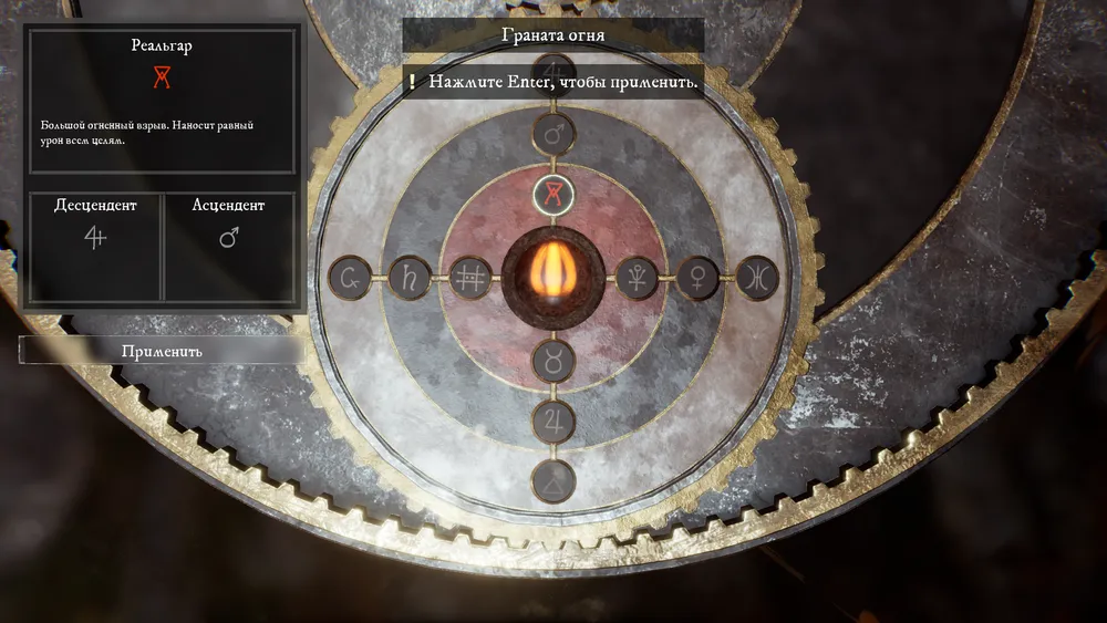 Улучшать мы можем не только оружие, но и того, кто нажимает на курок. У героя есть амальгама кругов в которых он совершенствуется: граната, особая атака и целебный элексир. Чтобы начать улучшения, нужно собрать специальную эссенцию со стража - эдакого мини-босса, и после этого подойти к трансмутатору (который как и верстак, встречается в нескольких локациях). Причем эти эссенции можно комбинировать и улучшать, с каждой ступенью, подбирая нужный себе эффект. Таким образом, гранаты могут или шарашить огнем, или оставлять после себя лужу кислоты, или самонаводиться, а специальная атака может как расшвыривать вокруг героя сгустки кислоты, так и давать ему ускорение подобно Флэшу.