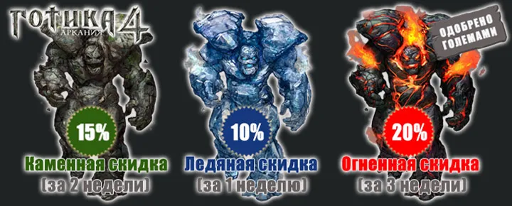 Наконец, самым прозорливым покупателям «Готики», которые оформят предзаказ на игру за целых три недели до её выхода (до 30 сентября), полагается поистине фантастическая скидка от яростного огненного великана – 20%! Ваши брови будут опалены, в глазах поселится огонь, и вы испытаете необыкновенный восторг – ведь это целых 20%!