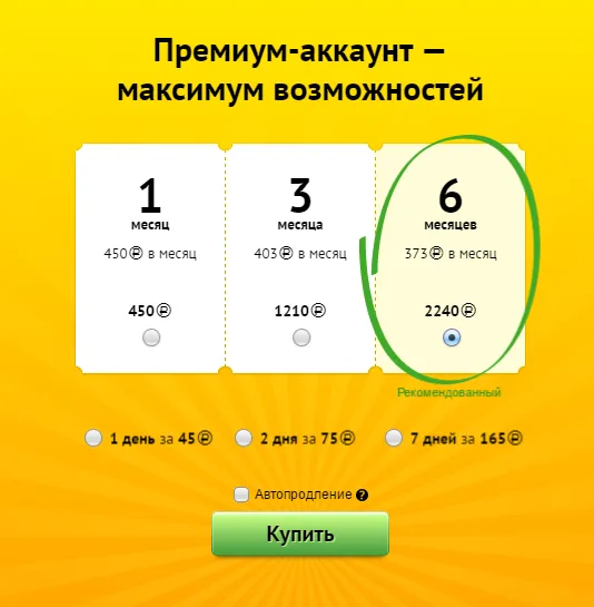 Во-первых, на самой платформе есть расширенный аккаунт (местное название премиум-подписки) с смешным ценником в 100 рублей за 30 дней. Кроме того, есть возможность приобрести расширенный аккаунт на 7, 90 и 180 дней. Вариант на полгода обойдётся в 450 рублей, что определенно дёшево.
