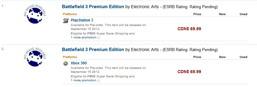 По всей видимости, компания EA и студия DICE готовятся анонсировать новое издание для прошлогоднего боевика Battlefield 3, название которого - Premium Edition. Канадский Amazon уже выставил на предзаказ данное издание. Что будет входить в данное издание, пока неизвестно, известна лишь дата релиза - 15 сентября, и цена издания - 69 долларов.