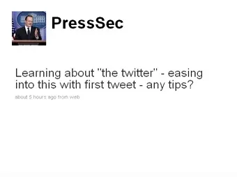 "Изучаю твиттер - вот пока первое сообщение - есть советы?" - написал Гиббс около 22:00 субботы по московскому времени под ником PressSec. За пять часов у президентского пресс-секретаря появилось более 7 тысяч читателей, которые дали ему десятки советов.