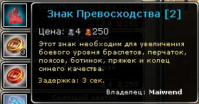 В случае победы можно заработать в общей сложности 3 простых – серых знака и один синий. Простые знаки дают за активный захват кристаллов, как самим игроком, так и командой в целом. Синий знак дают только за победу. Как известно знаки превосходства используются для усиления браслетов, перчаток, поясов, ботинок, пряжек и колец, того цвета, какого цвета сам знак.