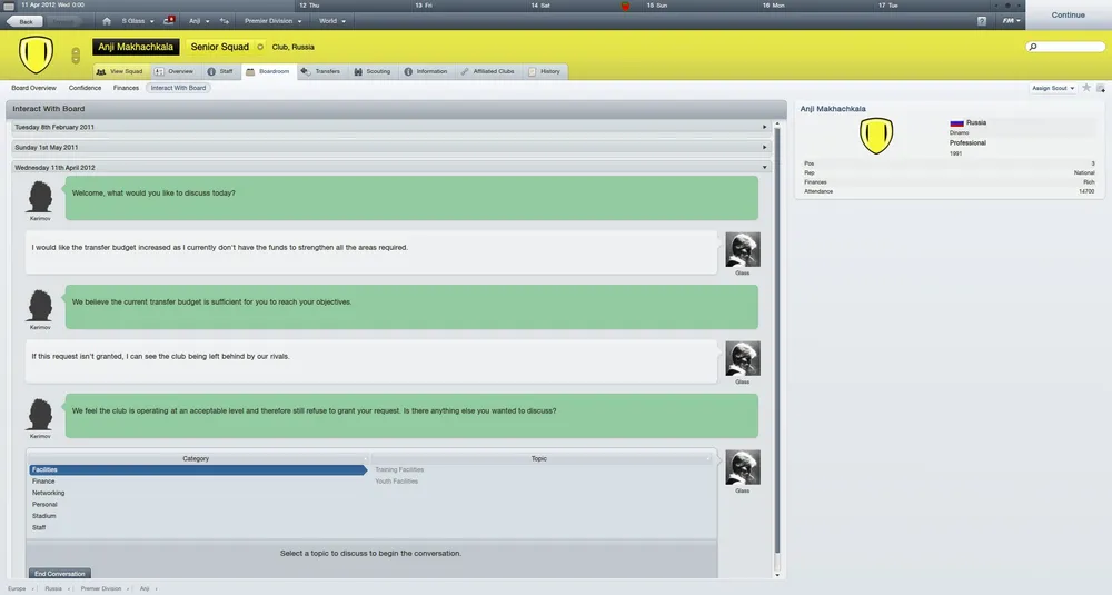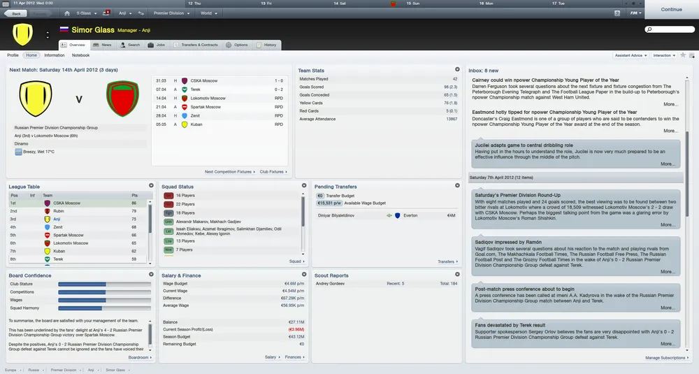 Конечно, игра не претерпела кардинальных изменений, и не стала каким-нибудь весёлым tycoon. Мы по прежнему проводим большую часть времени, ковыряясь в таблицах, просматривая тонны информации, регулярно выводя на газон своих подопечных. Мы отвечаем за все трансферы, за контракты игроков, за их настрой и микроклимат в команде, только мы решаем, кто выйдет в основном составе, а кто будет гнить в дубле. Но за денежными средствами по-прежнему надо идти к большим дядям.