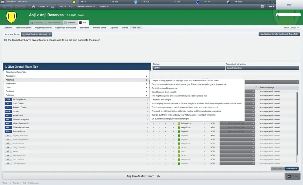 Одним из главных нововведений можно считать обновлённую систему разговоров с командой во время матча. Теперь мы можем выбирать интонацию (всего их шесть) с какой будем общаться с нашими игроками. Причём принять решение можно только раз, сказанного не воротишь. Уроки доктора Лайтмана не прошли даром и мы можем определить сразу как игроки отреагировали на наши слова, и если что поговорить с ними лично.