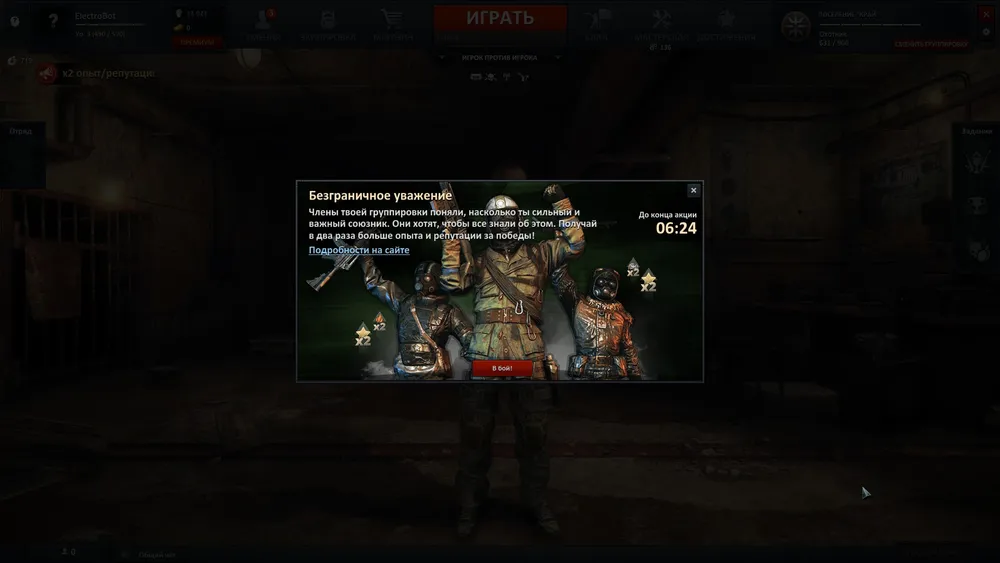 - Безграничное уважение – во время события вы будете получать в два раза больше опыта и репутации за победу в бою!