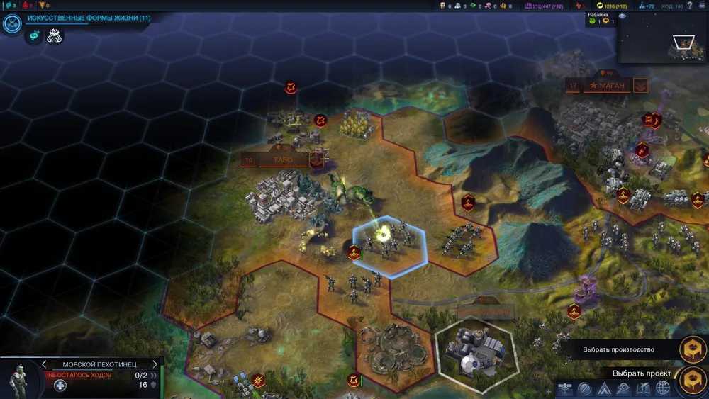 Мелочи. Их так много. Они не брезгуют менять даже базовые концепции Civilization V, что уж говорить о внутренних механизмах игры. Одна только старая гексагональная карта расширилась за счёт второго уровня, где сражаются за сферы влияния спутники разных направлений. Одни увеличивают прирост внеземной морковки, другие выступают афродизиаками (анафродизиаками) для жителей. Они сходят с орбиты и низвергаются на поверхность, а переработанные прямо на месте своего крушения приносят ещё и какие-никакие ресурсы. Мелочей тьма. В дипломатии теперь появился ценный ресурс – услуга. Оказав услугу другим поселенцам, вскоре вы можете потребовать что-то иное взамен. А накопив услуг, можно вообще решиться на какие-нибудь серьёзные требования. К тому же дипломатия здесь традиционно поддерживается шпионскими делишками, эффективность которых иногда просто пугает.