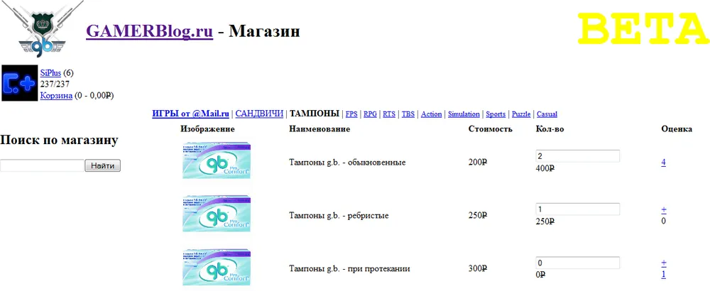И еще одна новая фича - магазин. На нем будут продаваться игры, сандвичи и тампоны. Мне удалось сделать скриншот бета-версии.