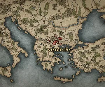 В начале компании, Вестготы находятся на территориях Македонии с возможностью выбора цели для нанесения удара. Выбор за вами. Возглавите ли вы север в походе в неизвестные районы карты на юго-востоке, направив удар по близлежащим землям Восточной Римской Империи, дерзнув пробудить ее гнев, или совершите набег на запад, воспользовавшись слабостью Рима? Время приучила людей брать то, что плохо лежит. Вестготы редко голодают и требуют высокую цену у народов, которых они покорили.