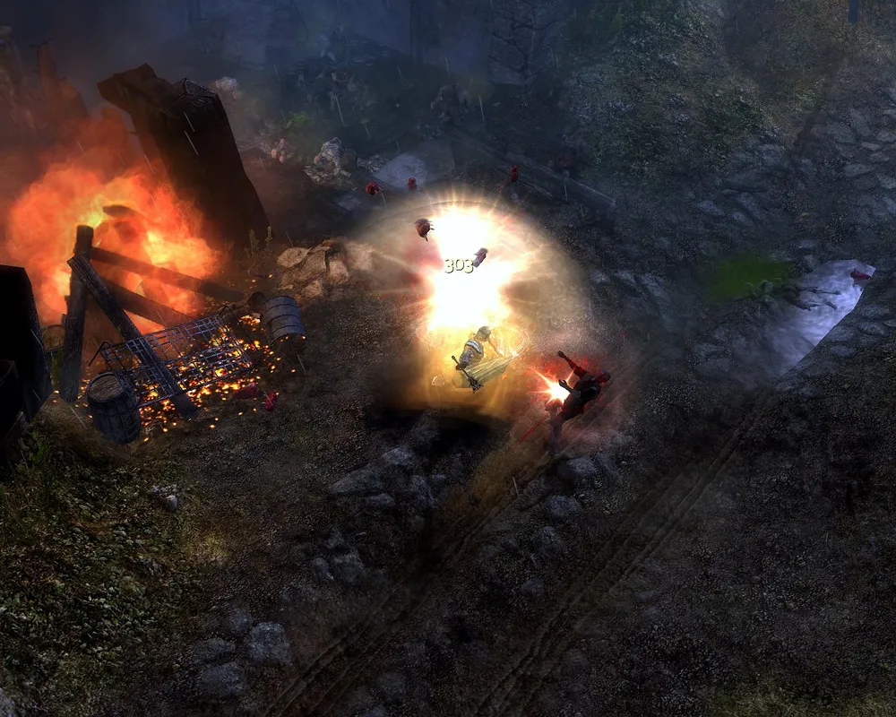 • > Интерактивное окружение дает возможность устраивать массивные сражения; разрушаясь, каменная кладка и летящие куски обстановки могут быть использованы тактически для нанесения урона противникам.