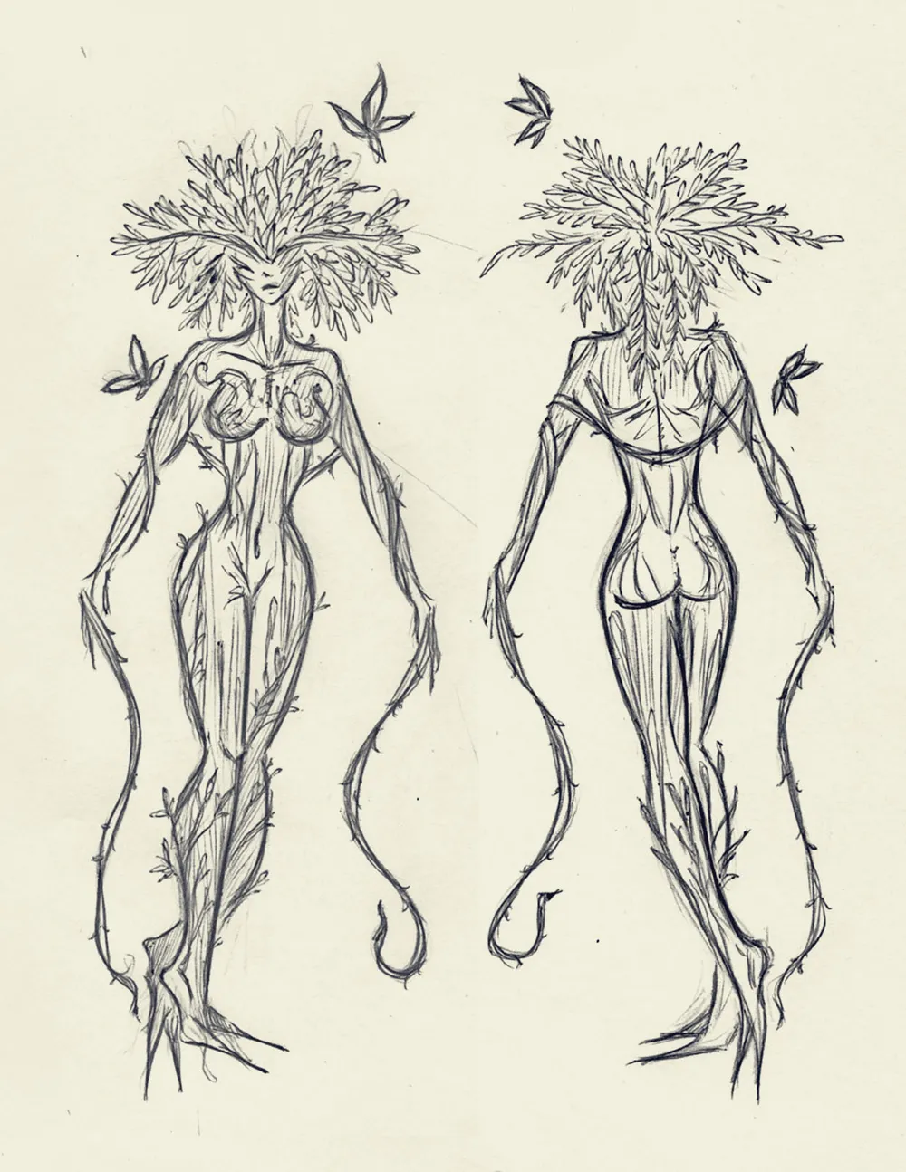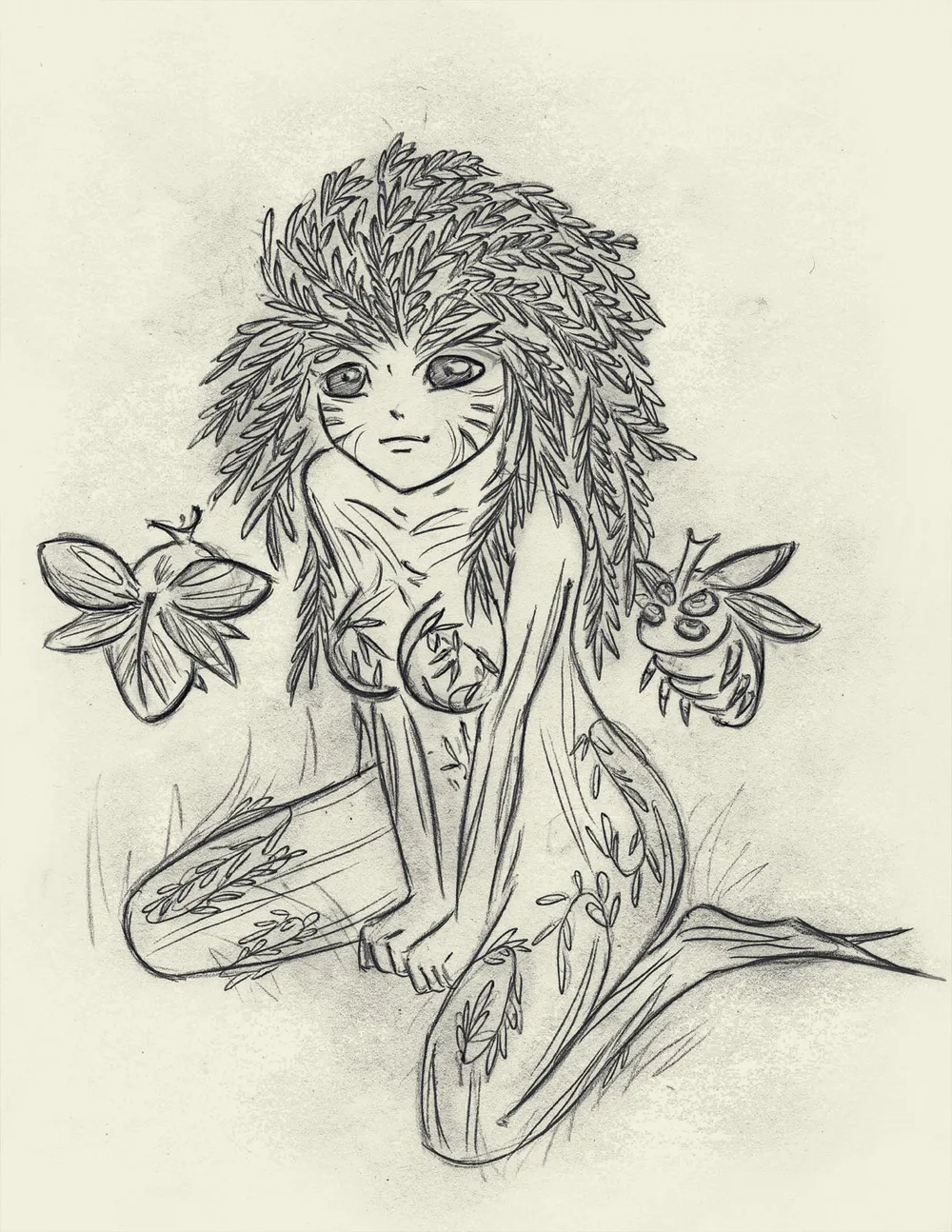 Совсем скоро я увидел, как медленно из остатков куста, что то выходит. Это женщина! Прекрасная, стройная женщина… Несколько минут тишины, и лес наполнился нежным пением на непонятном мне языке. Завораживающе! Из рощи вышли два сприлинга. Кора, на совершенных их телах, отражала лунный свет, а крона чуть шелестела от ветра. Они встречали новорожденную сестру (или брата, вот дилемма, спринлинг, а выглядит как женщина).