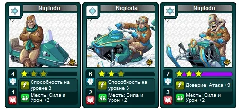 «Король вождения снегоходов к вашим услугам!» выкрикивает Niqiloda, когда садится верхом на свой снегоход. И, по правде говоря, он не далек от истины... за исключением моментов, когда слишком круто закладывает в поворот и заканчивает его в палатке лагеря, или после головокружительного прыжка потеряет одного из йети. Frozn прозвали его «король разрушения», и сделали грозной боевой машиной.