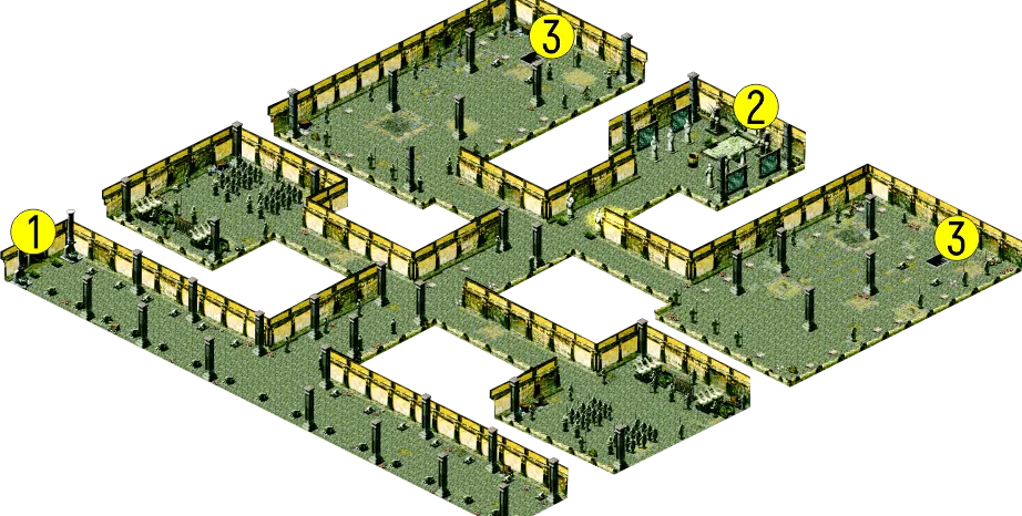 Первый ярус гробницы представляет собой лабиринт, в котором необходимо обратить внимание на две вещи. Во-первых, здесь очень много ловушек. Вам придется отправить на разведку своего убийцу, чтобы обнаружить и обезвредить их. Во-вторых, некоторые терракотовые статуи воинов при вашем приближении оживают и начинают атаковать вас.