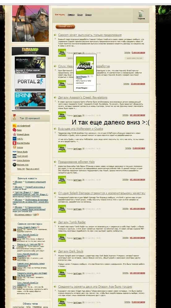 В ленте 20+ новостей от Игромагаз, причем не особо информативные и совсем не в стиле Гру