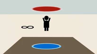 Качель — еще один вид броска. Его принципиальное отличие от предыдущего заключается в том, что оба портала расположены на полу, и скорость, набранная при падении в один портал, используется, чтобы взлететь на как можно большую высоту при вылете из другого портала.