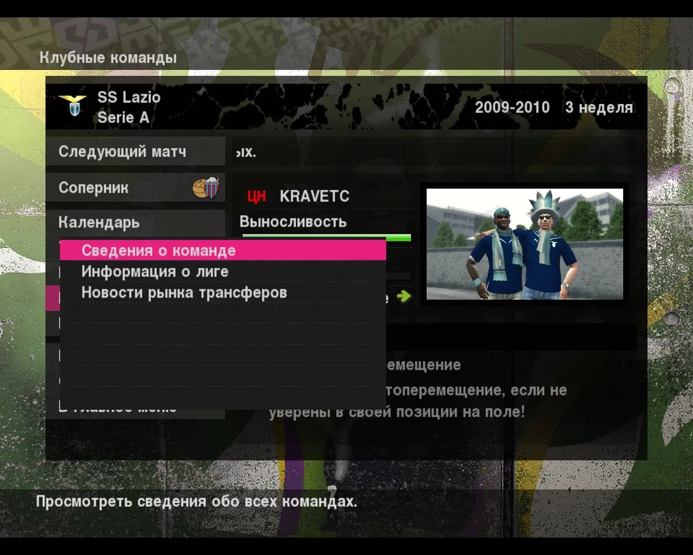 По сути все управление карьерой футболиста заключается в двух подпунктах меню: Игрок и Клубная команда. И если быть уж совсем точным то все возможности влияния на судьбу вашего игрока сосредоточены в меню Игрок, тогда как в Клубной команде можно посмотреть лишь статистику турнира.