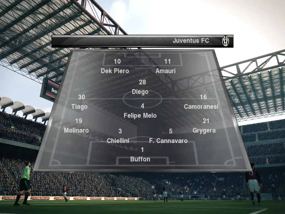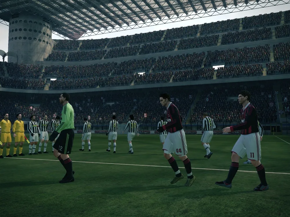 Главное действо PES 2010 начинается красивым планом стадиона, на котором будет проходить поединок. В стиле профессиональных трансляций футбольных матчей камера плавно показывает футбольное поле и трибуны с болельщиками. После этого включается камера из туннеля где мы видим команды готовые к матчу, капитаны как и положено стоят впереди, одни игроки переговариваются между собой, другие сконцентрировано смотрят в прекрасное далеко.