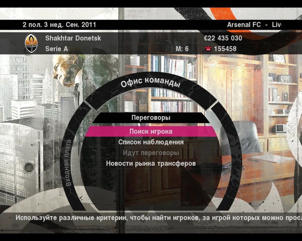 Если вы хотите создать команду-чемпион, то конечно же вам нужно подобрать лучших из лучших игроков, укрепить слабые места вашего клуба. Для этого существует меню Поиск игрока. Заглянем в него.