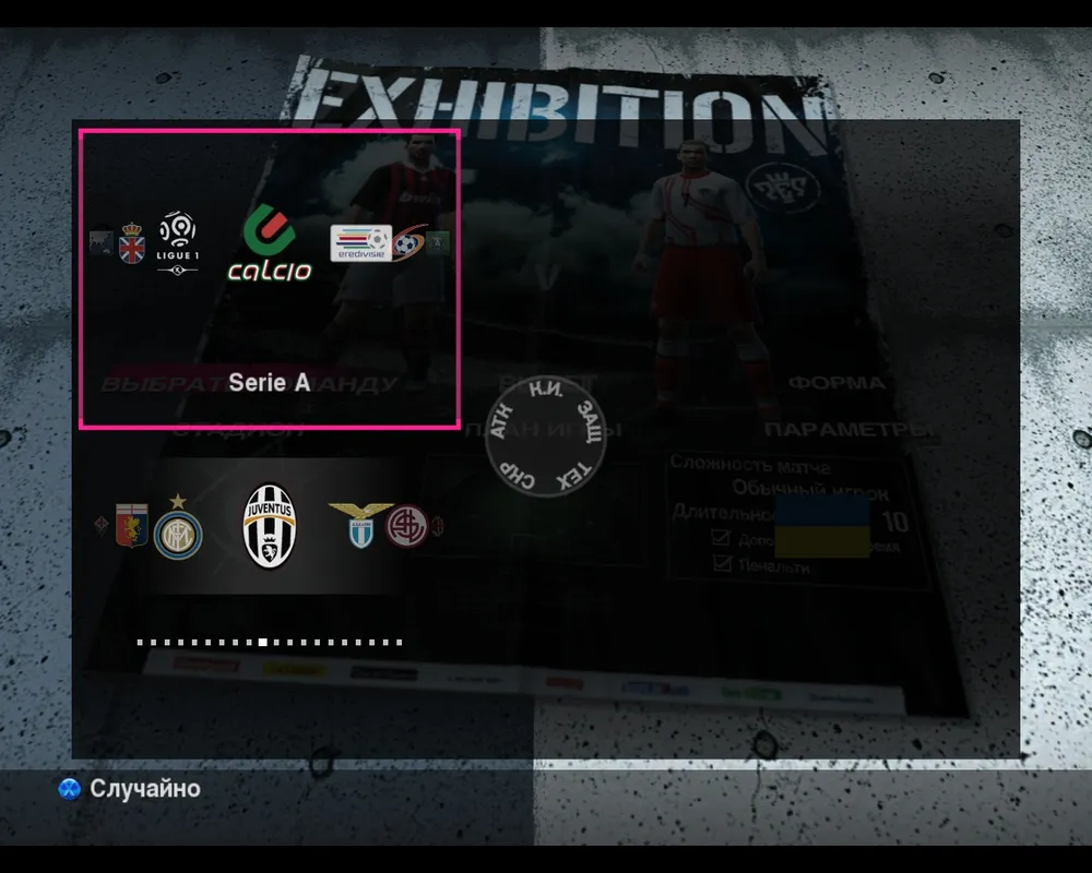 Для начала нужно выбрать команду, за которую будем играть. Сразу нарастает вопрос: как в этом году ситуация с лицензированием европейских чемпионатов? Нужно ответить, что так же как и в прошлом – полные лицензии имеются лишь в итальянском Calcio, французской Ligua 1 и голландской Eredivisi. Частично лицензированы испанская Примера и английская Премьер-Лига. Также в разделе Другие Лиги А находятся команды из разных не столь престижных чемпионатов, большинство которых представляют Восточную Европу. Стоит отметить, что в этом списке присутствуют русские Локомотив, Спартак и Зенит, а также украинские Динамо, Шахтер и Металлист. Сборные команды разбиты на категории по материках. Выбираем любую из этих команд и переходим в следующее меню.