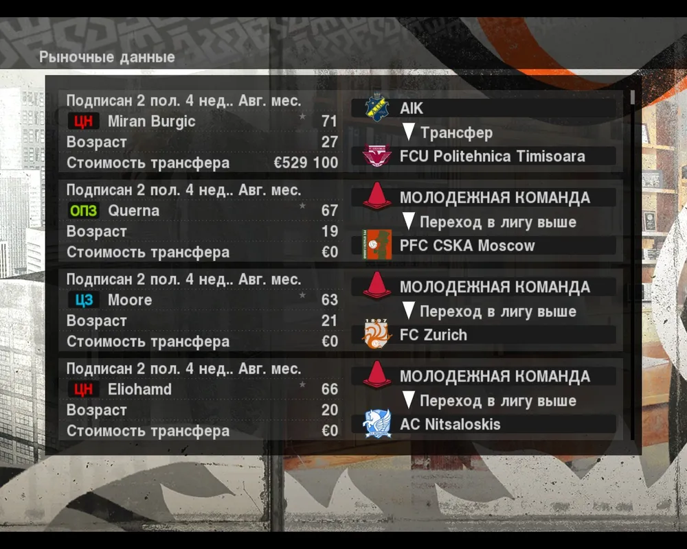 В списке наблюдения футболисты постоянно находятся под пристальным глазом ваших скаутов, и любая перемена в их игровой карьере тотчас становиться известна вам. Иногда бывает так, что футболист ранее не соглашавшийся на переход, передумал и имеет желания вступить в ваши ряды. Об этом тоже вам сообщат скауты.