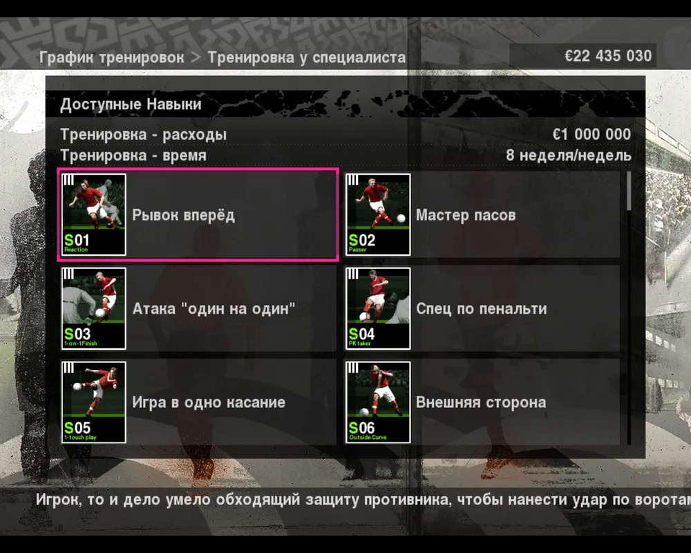 Кроме этого вы можете тренировать игроков по индивидуальному режиму, отдав их под обучение неким специалистам. Тренировка у специалистов может включать два подхода – либо выбрать возможность научить игрока играть на другой позиции, либо присвоит ему новый навык, с помощью упоминаемых мною раньше карточек. Лично мне возможность смены позиции не очень понравилась, так как реального ощущения во время игры она не дает – если вы присвоите крайнему полузащитнику навык форварда то поставив его на позицию последнего толку от него будет столько же столько и до тренировки. Может быть, это мнение не верно, но по крайней мере мне так показалось. Буду рад, если вы его опровергнете.