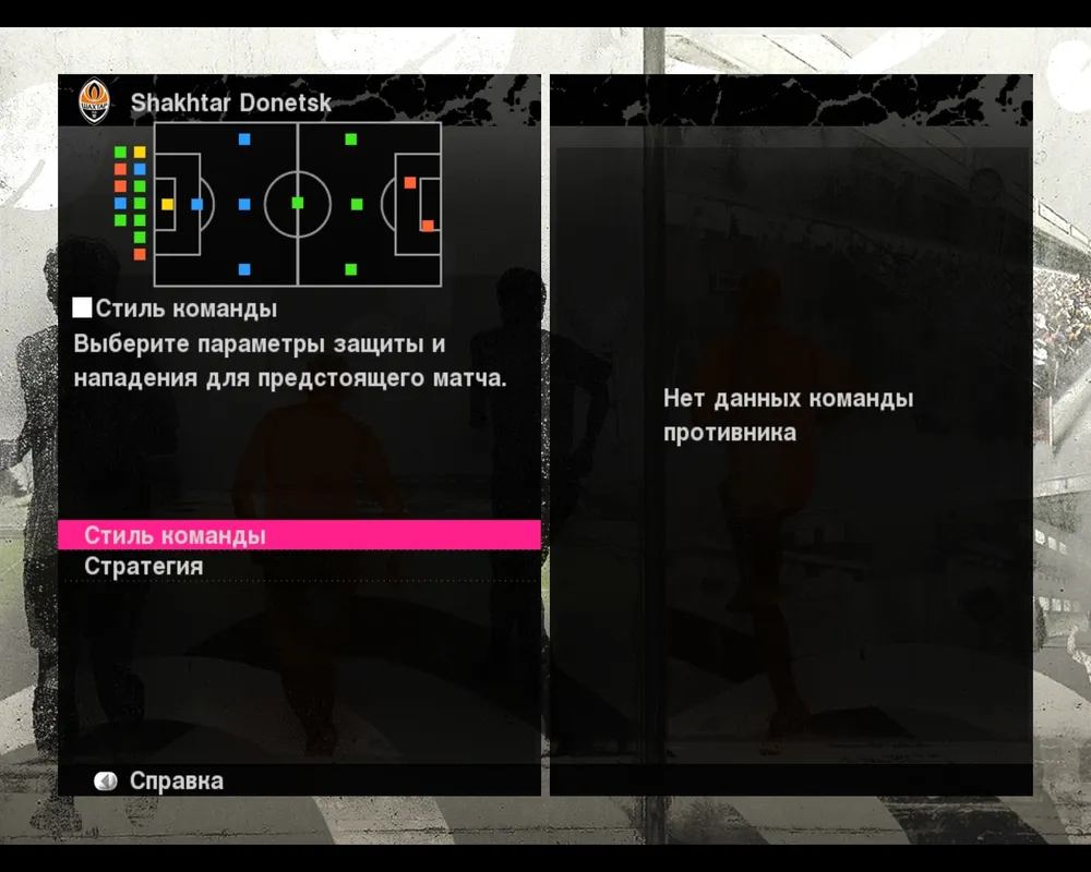 Стиль команды. Каждая команда индивидуальна и имеет свой рисунок игры. Они все непохожи и трудно найти идентичный один другому. Скажете так может быть только в реальной жизни? Нет, на этот раз реальность переноситься в PES 2010. Да, в стиле команды можно настроить много параметров, которые имеют ощутимое отображение в игре, и действительно очень изменяют действия команды. Что можно настроить в данном меню?