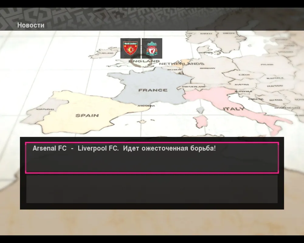 Еще одним довольно интересным, новым, но на мой взгляд совершенно бесполезным пунктом офисного меню есть Новости. Здесь на фоне большой карты Европы отображаются самые актуальные новости ведущих чемпионатов. Они могут быт такого типа: «Манчестер ведет ожесточенную борьбу с Ливерпулем», «Торрес борется за первое место в списке бомбардиров», «В Примере самый разгар сезона». Все это носит лишь информационный характер, и нужно оно или нет решать вам. Я же очень редко читаю новости.