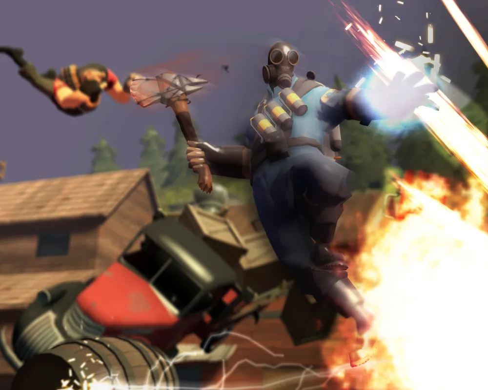 2) Дробовичок-чок-чок-чок! или Флейр? Ну конечно же дробовик! С дробовиком вы никогда не будете идиотом. Ведь с него невозможно убить хэвика мини-критами издали без вреда для себя-это ведь не по-рэмбовски! Школа боевых искусств пиро-фу готовит рэмбо-камикадзе, а не сопливых трусов! Вы не будете злить тем, что выносите скаутов с 1-2 выстрелов с Флейра. Вражеские снайперы будут вам благодарны за то, что вы их не поджигаете за 100 метров, и почтят вашу память 5 секундами минутой молчания...