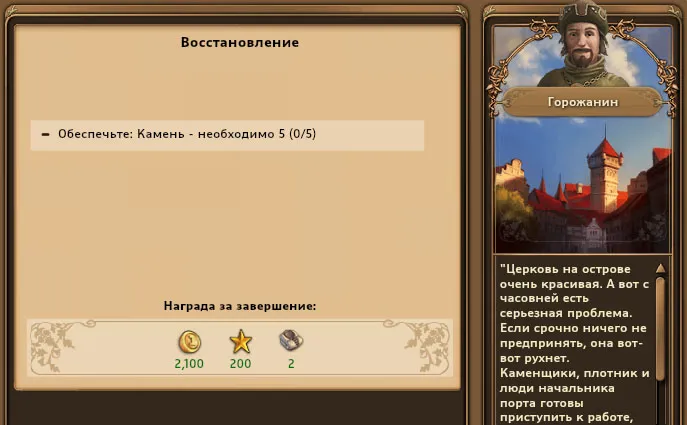 Спустя некоторое время один горожанин, видимо вернувшийся с недавнего празднования присвоения городу нового статуса, заявил, что церковь-то у нас на острове очень красивая, а вот часовня того и гляди развалится, выделите-ка камней на её починку. Спустя множество тщетных попыток отыскать на острове церковь, я таки отрядила им стройматериалов на починку, мало ли что...