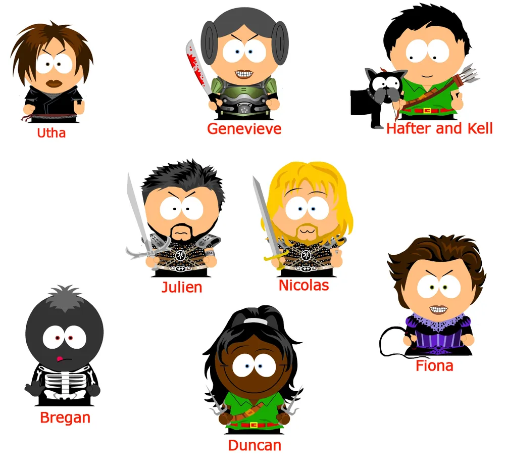 Женевьева представляет остальной отряд- КолобродаКелля следопыта с собакой, немую, но с очень выразительными trololo гномку Уту и симпатичную эльфийку у которой на лице написано, что она станет любовным интересом Мэрика.