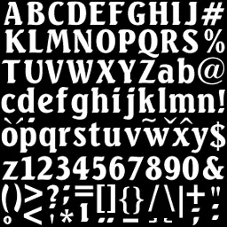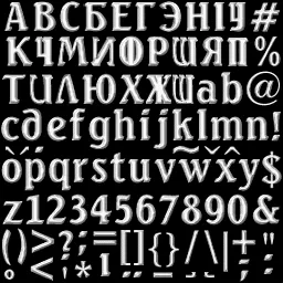 Произведено составление "алфавита". Была проведена аналогия между английским шрифтом в игре и русской адаптацией того же шрифта. За основу взята работа неизвестного пиратского живописца XIV века. Выглядит это примерно так: