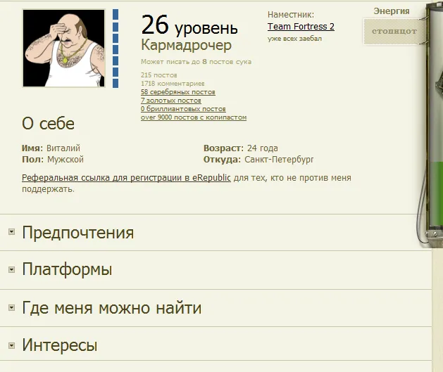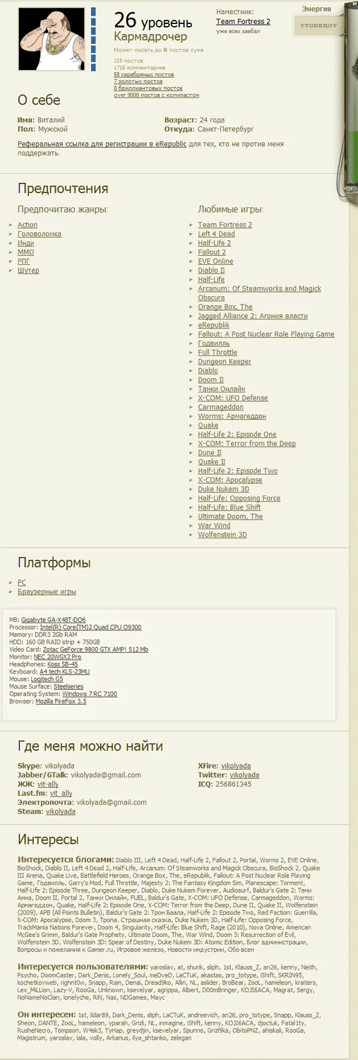 Например, сейчас мой профиль занимает больше 2-ух экранов стандартного монитора.