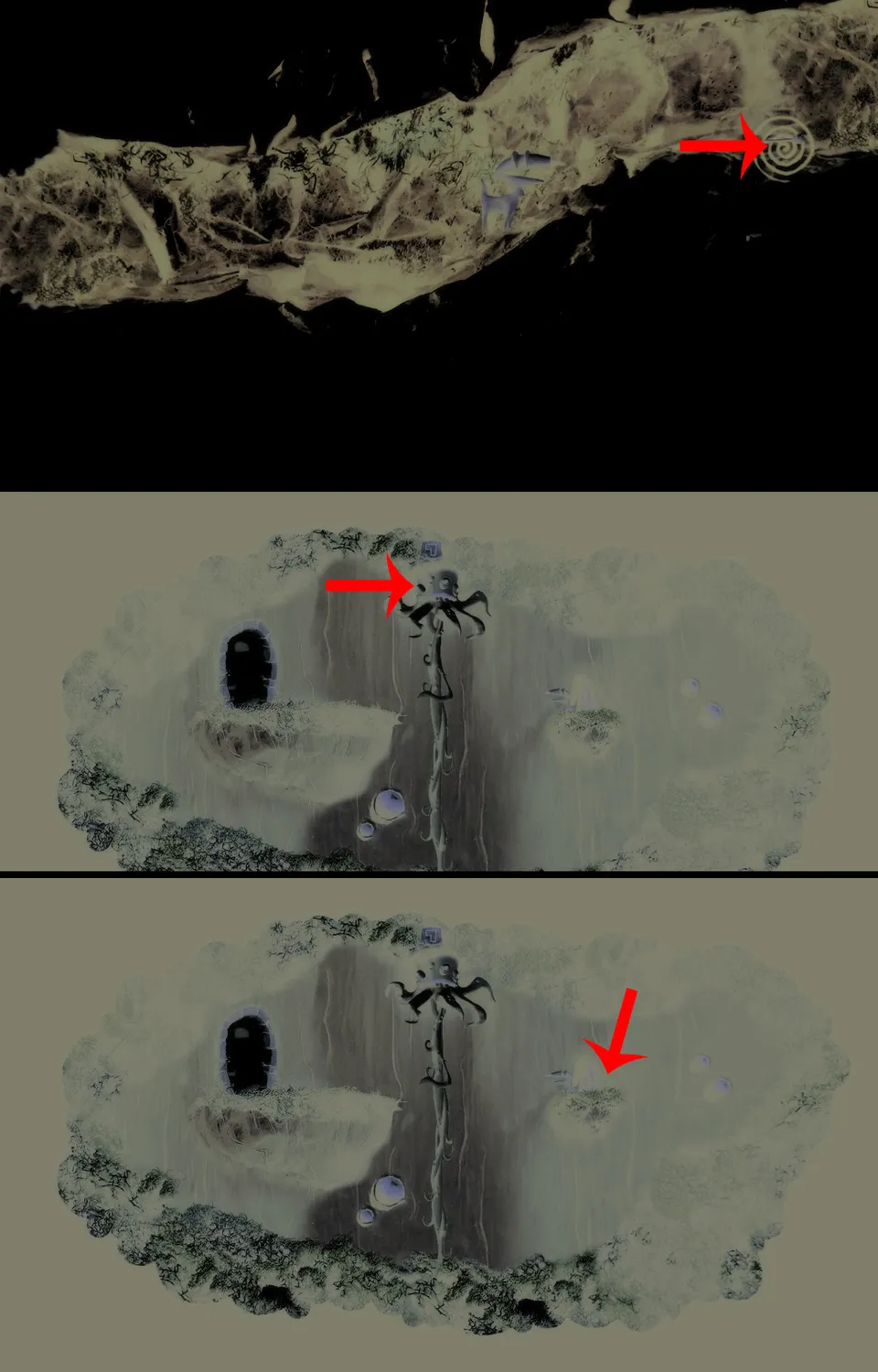 Добравшись до конца не спешите разгадывать пазл. Для начала переключитесь на Клювика и зайдите в дыру. Дойдите до конца, и сделайте несколько вещей: