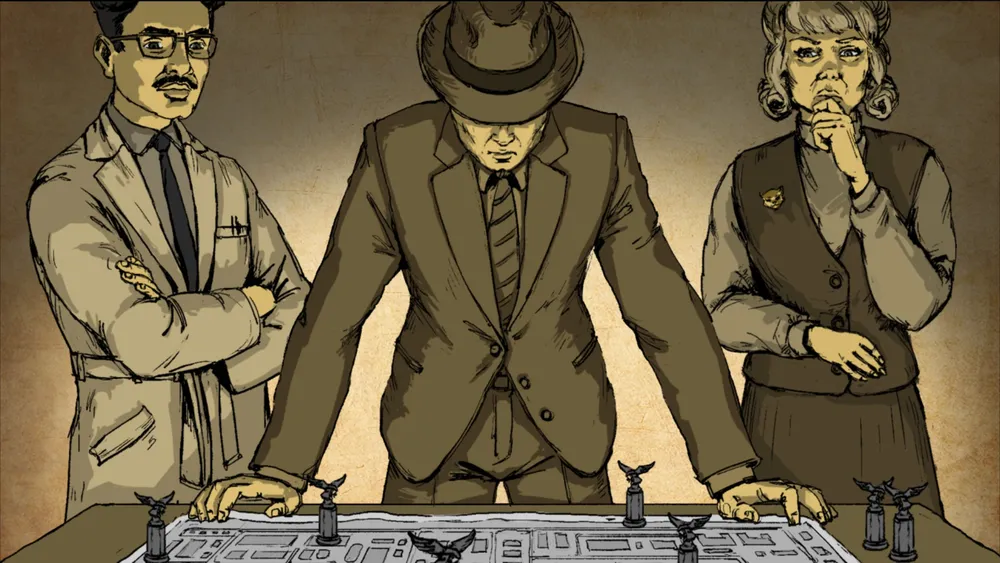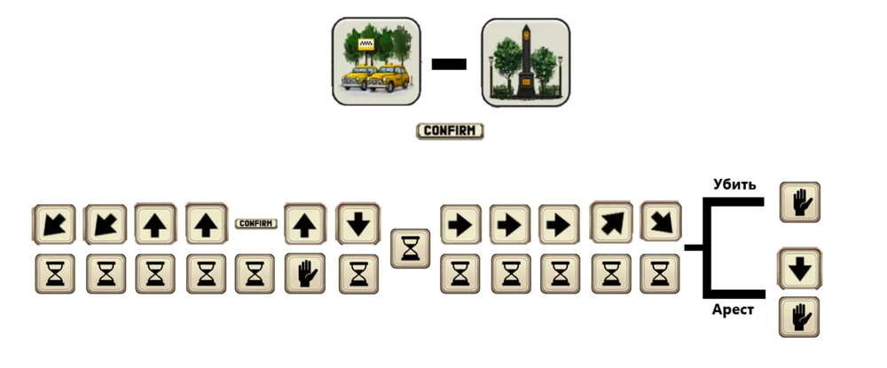 Игра начинается в 1960 году. Первое дело, поимка доктора Клауса Эстерлица можно считать обучением и небольшой разминкой. Самая первая миссия, операция в городе. Нужно сфотографировать подозреваемого и отправить фото по почте. Задание базовое и легко решаемое, потому останавливаться на нем не будем. Оставлю лишь картинку последовательности шагов, чтобы на этом примере дать представление в каком формате буду составлять решения остальных городских операций.