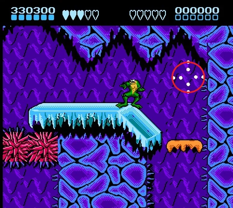 МухиВсе знают, что жабы любят есть мух. Во время прохождения время от времени они будут вылетать на экран. В этот момент нужно нажать B, жабы попытаются языком поймать мух. Если им это удастся, то восстановится 1 ячейка здоровья.
