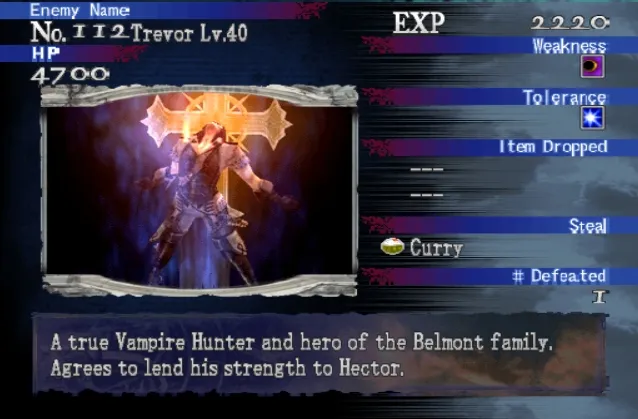 На этот раз Бельмонта придётся бить до конца. Просто экипируйте 7-Bladed Sword или Death's Scythe и желательно ID Razets с атакой Glow Soul. Спамим атакой ID и сами бьём босса всеми возможными комбо. Когда босс загорится, сделайте передышку и дождитесь конца выпада. Своровать, к сожалению, ничего нельзя.