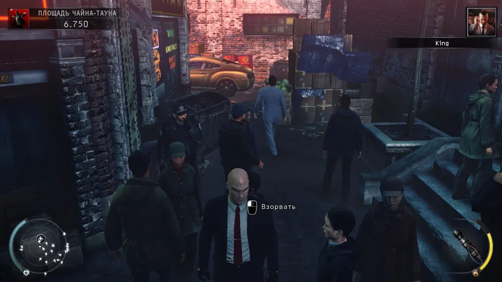 Осталось спустится, тюкнуть по машине для включения сигнализации, слиться толпой, дождаться короля, решившего проверить машину и