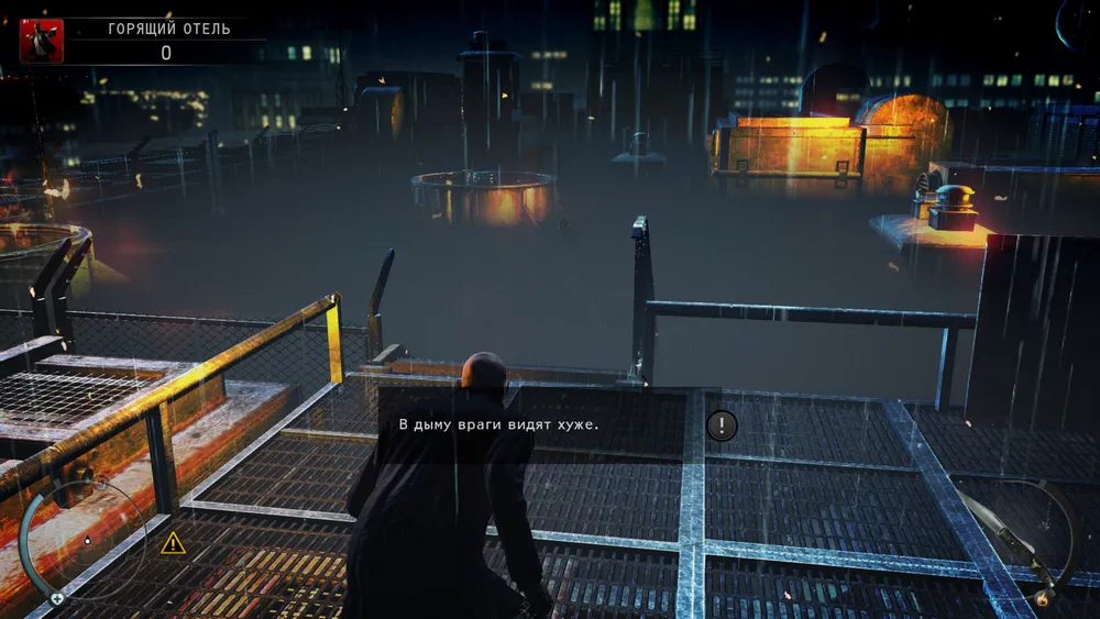 Добираемся до крыши отеля, там все в дыму, значит нас будет сложнее заметить.