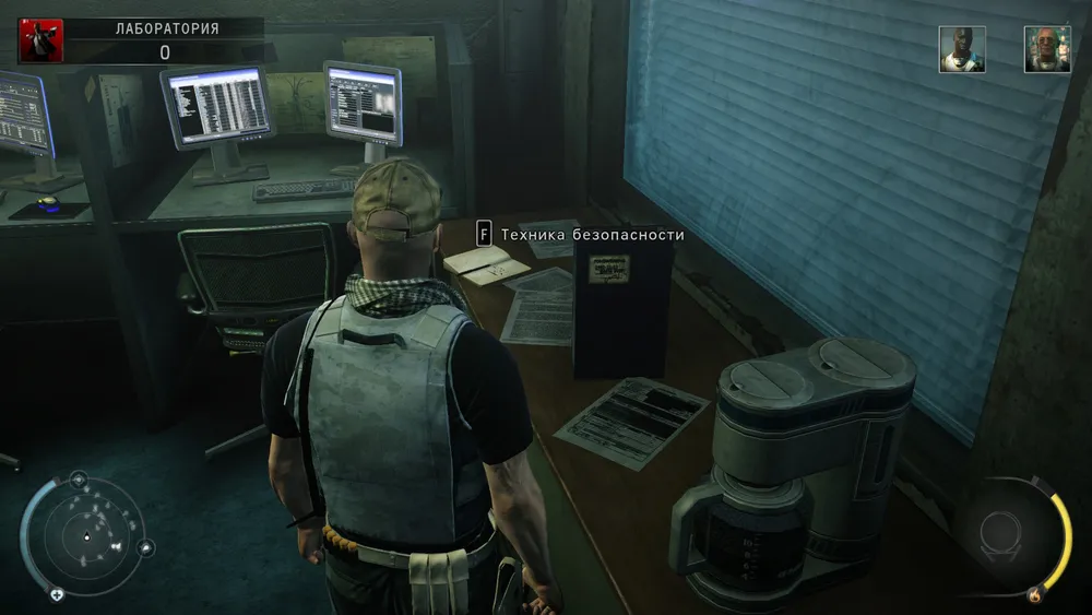 теперь нам в комнату где допрашивают желтого дядьку, необходимые материалы за его спиной. Выманить одного из охранников можно двумя способами, пробежав навстречу окну,