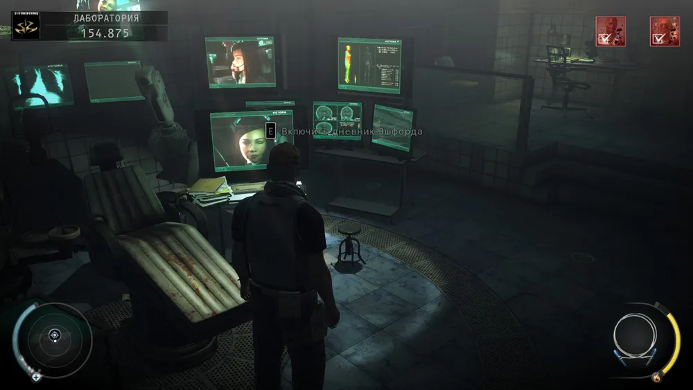 останется дослушать разговор двух исследователей и спрятать тело в шкаф. Если не успели спускаемся за доктором вниз.