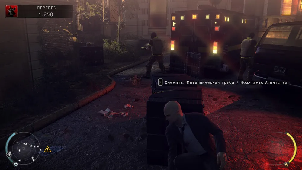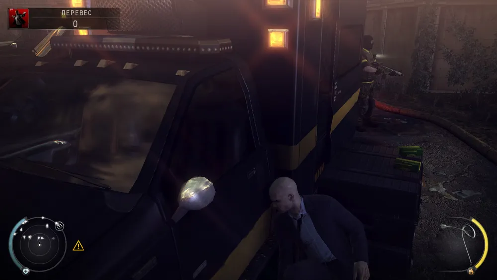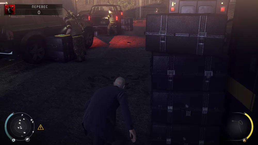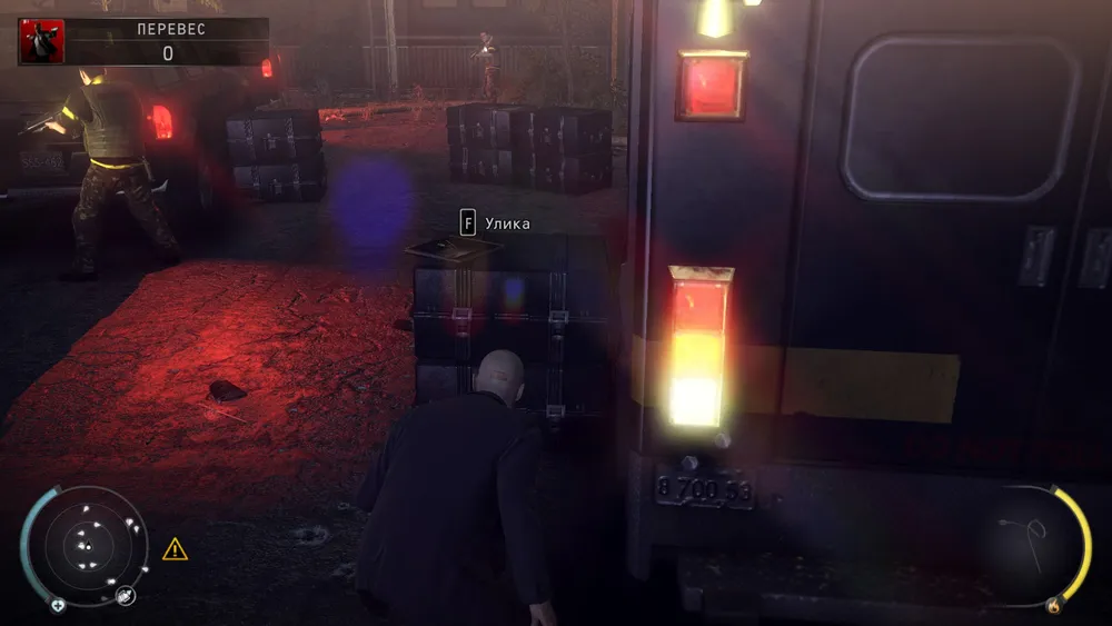 прижаться к ним, перепрыгнуть и снова прижаться к ящикам, пока охранники не обернулись. Перебегаем за машину