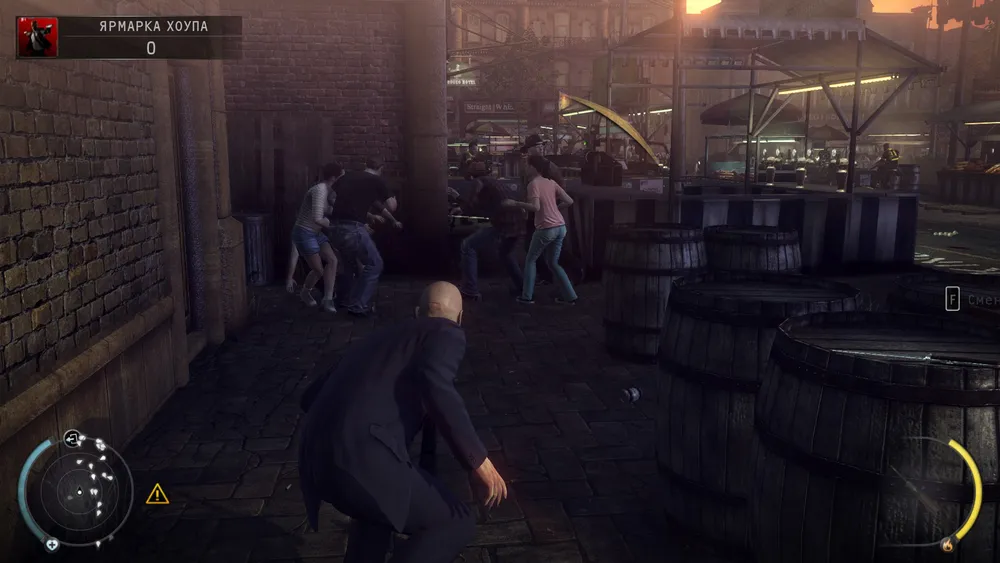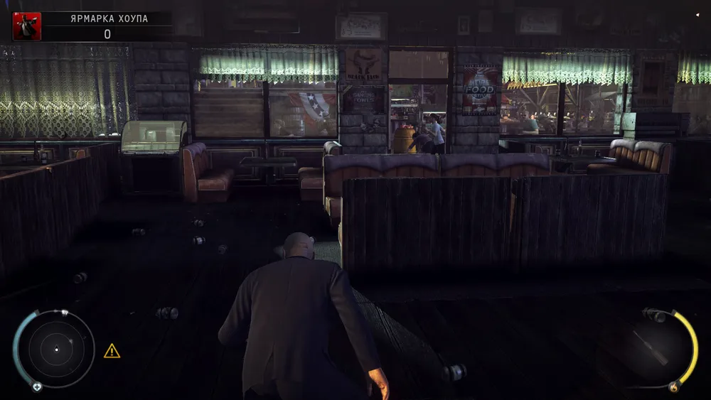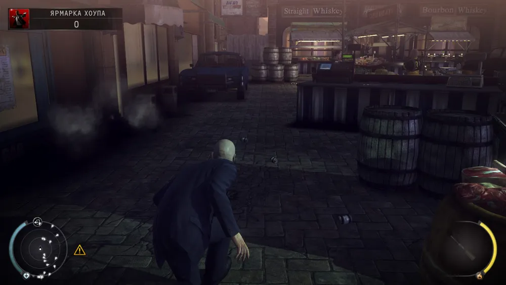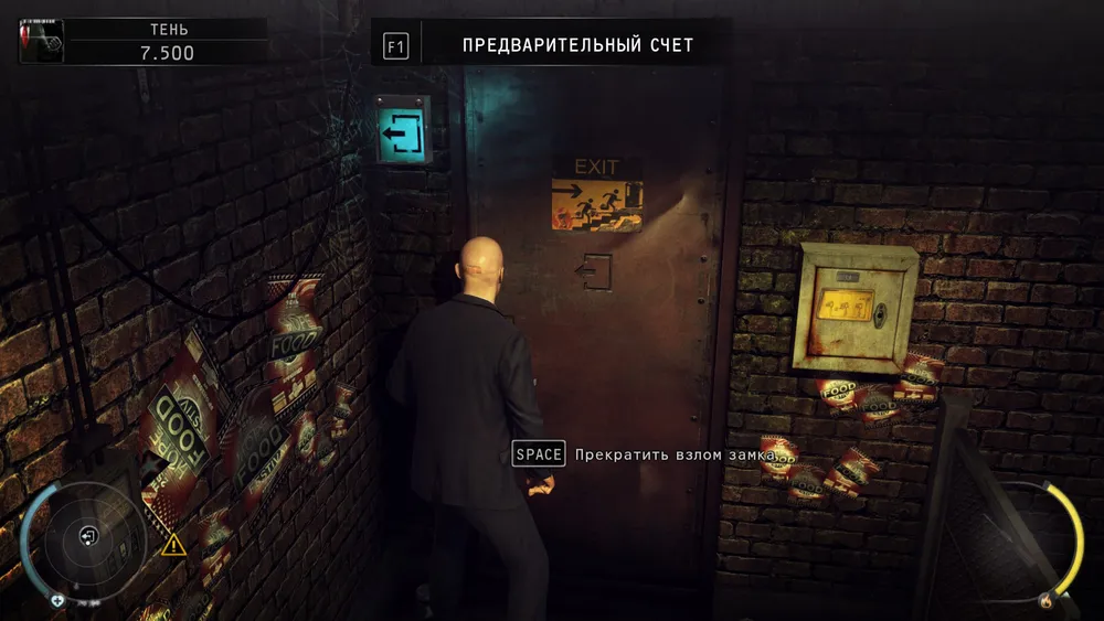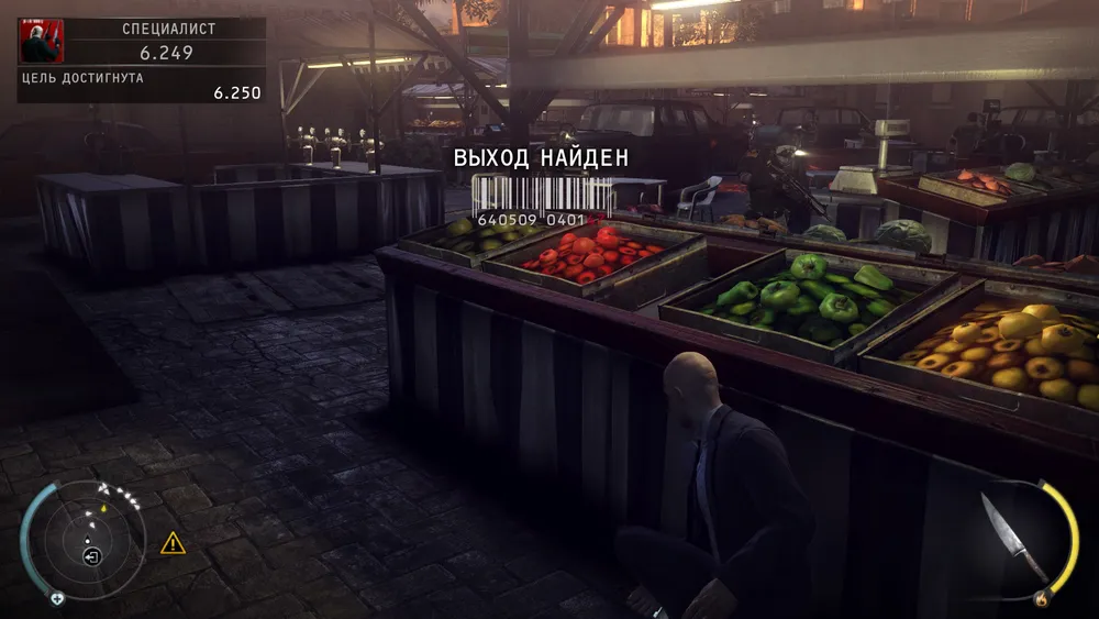 вот и выход, но нам направо за уликой, прячемся за фруктами
