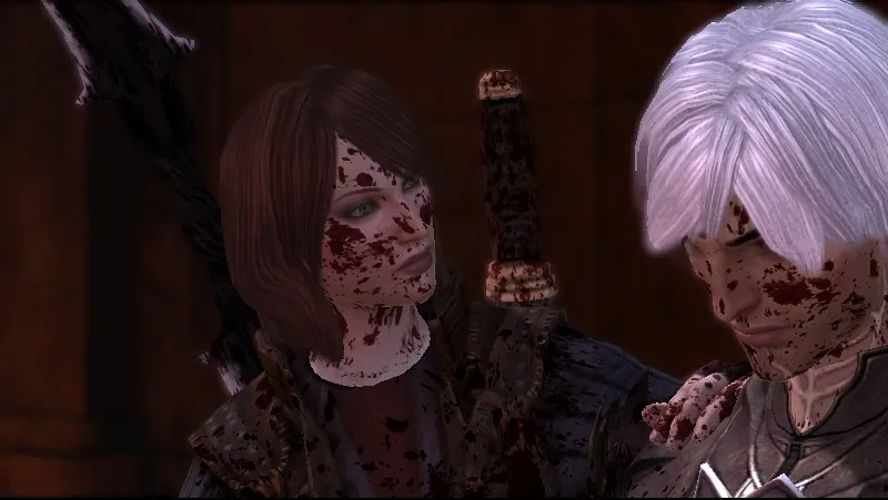 Не забыв обобрать убитых порождений тьмы и тела несчастных слева и справа от тропы поднимаемся вверх по склону. Сестра поинтересуется, куда мы намерены идти, и по общему решению отправляемся мы в Киркволл. Только мы успеваем напасть на ближайшего порождения тьмы, как видим своих будущих спутников – воина Авелин и её мужа, раненого храмовника по имени Уэсли. Помогаем Авелин покончить с порождениями тьмы и затем натыкаемся на откровенную враждебность её мужа по отношению к сестре (либо ещё и к главному герою, если он маг). Мы узнаём, что они также бегут от порождений тьмы с самого Остагара, и что они также были в армии погибшего короля Кайлана. Уэсли готов сделать одолжение, закрыв глаза на спутников-отступников (много он интересно раненый навоевал бы), и всей компанией мы идём дальше.